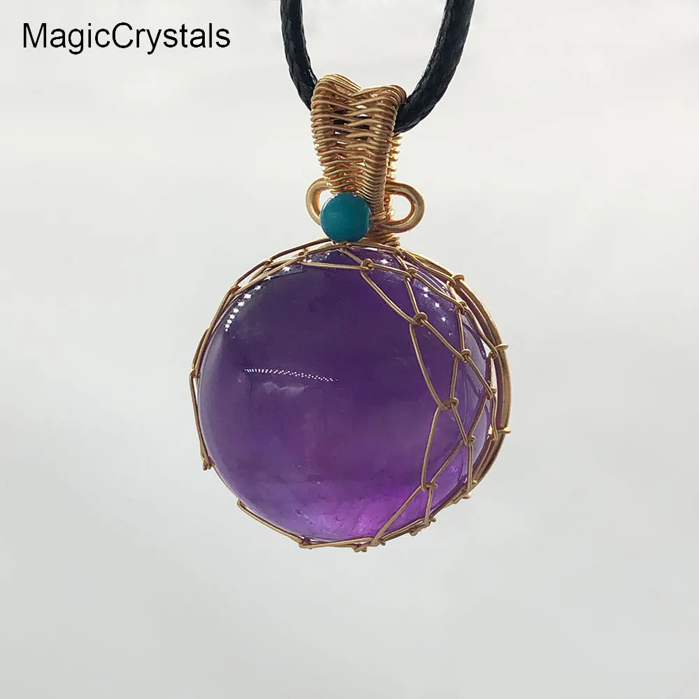 Natural Clear Smoky Quartz Rainbow Crystal Ball Pendant Sphere Healing Reiki Stone Women Gift Wire Hand Craft