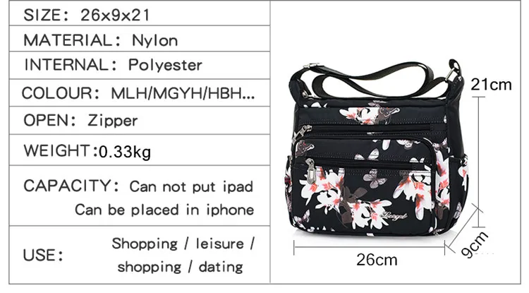 2021 New Designer Handbags Women Flower Butterfly Printed Waterproof Nylon Shoulder Bags Retro Crossbody Bag Sac A Main Bolsos