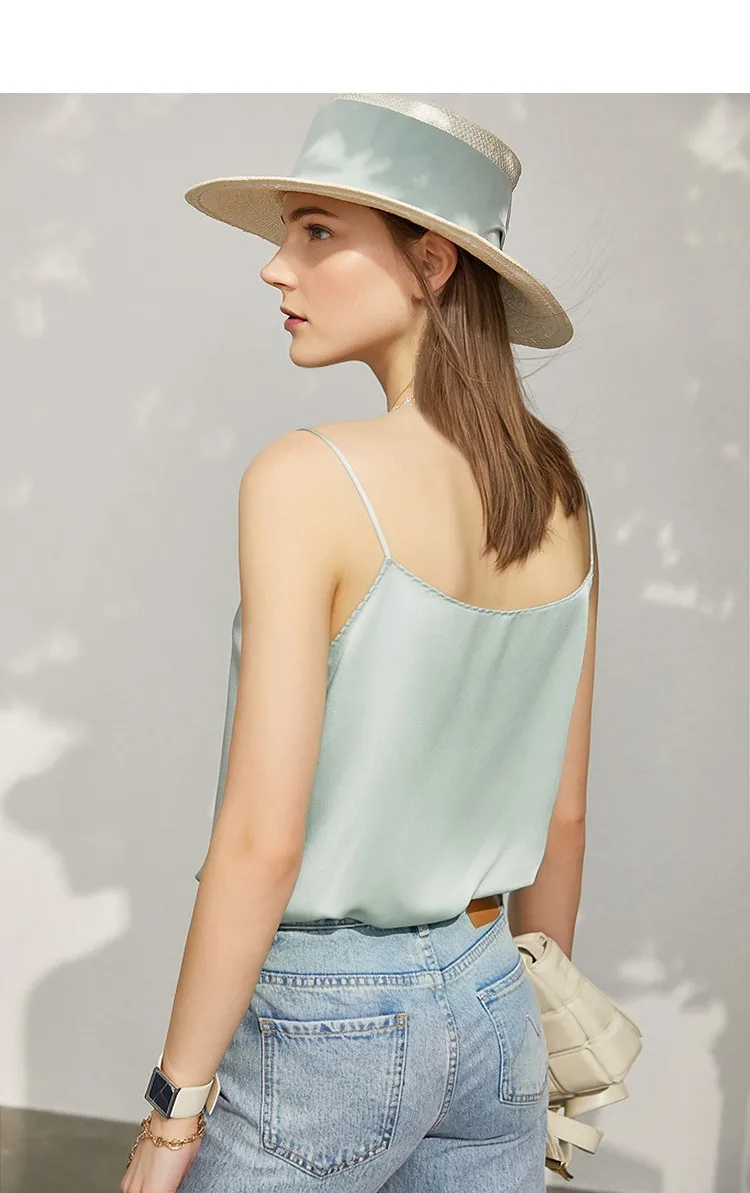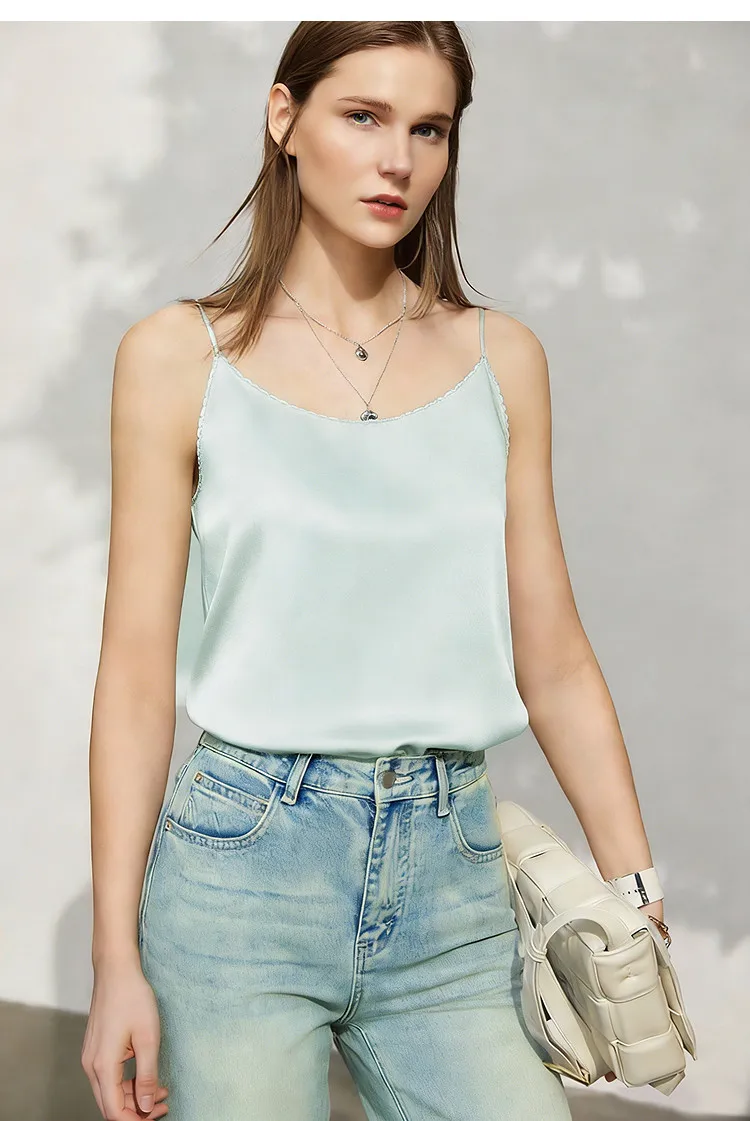 Amii Women's Camisole Top 2026 Summer U-Neck Straight Fit Sleeveless Satin Vest Spaghetti Strap Layering Tank For Women 12622085 photo review