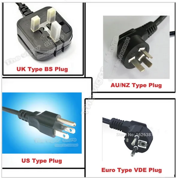 4. We can send the four types plugs as below, so please let us knowwhich type of plug and the voltage you need for the machine.