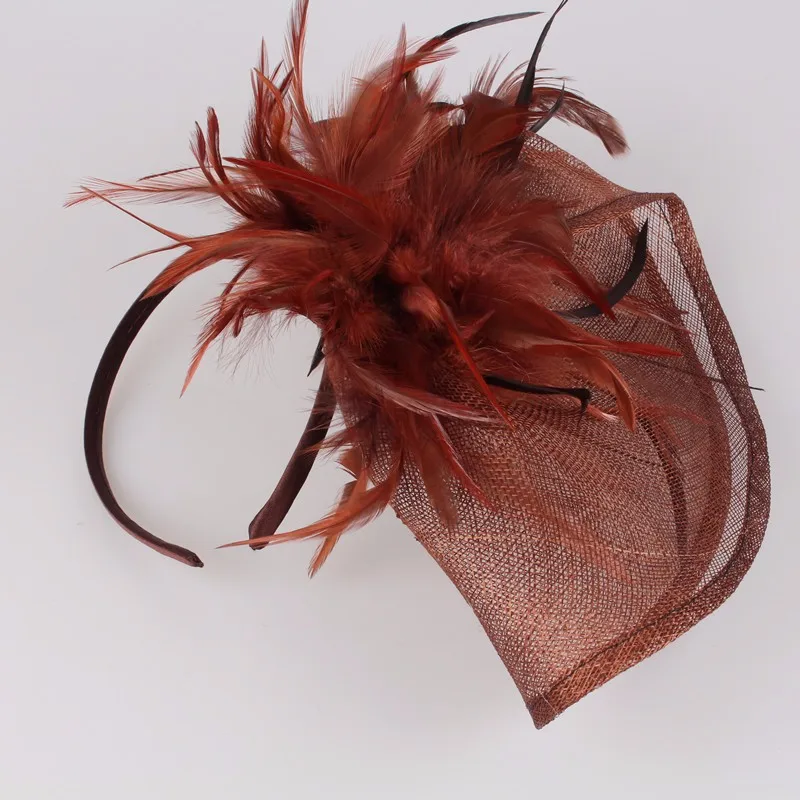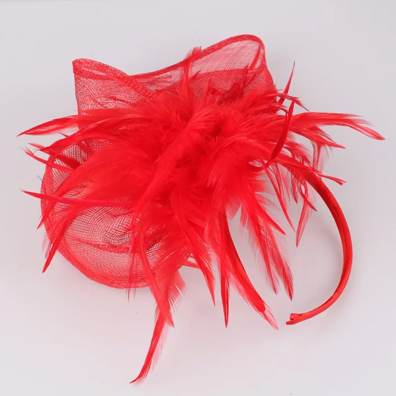 Gold derby kentucky millinery sinamay fascinators headband with Plump feather red cocktail hat Melbourne Cup hair clips MYQ032