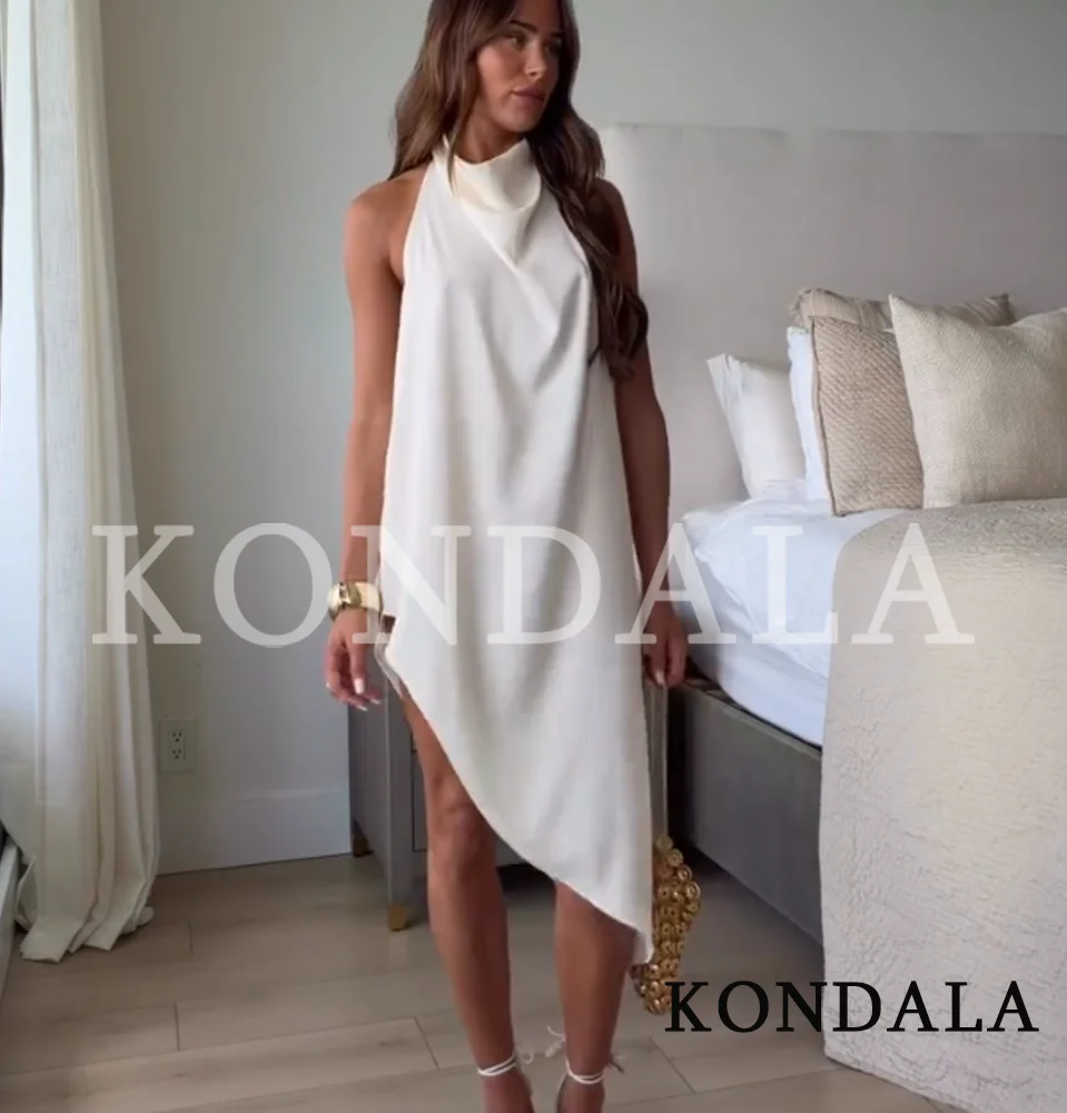 1 review for KONDALA Elegant Asymmetrical Halter Tops Women’s Casual Vacation Backless Tops New 2026 Spring Summer Fashion Simple Female Tops