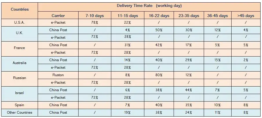 1. China PostĀ ——It is the default shipping methods for all orders, we usually ship the order to buyer by China Post.
