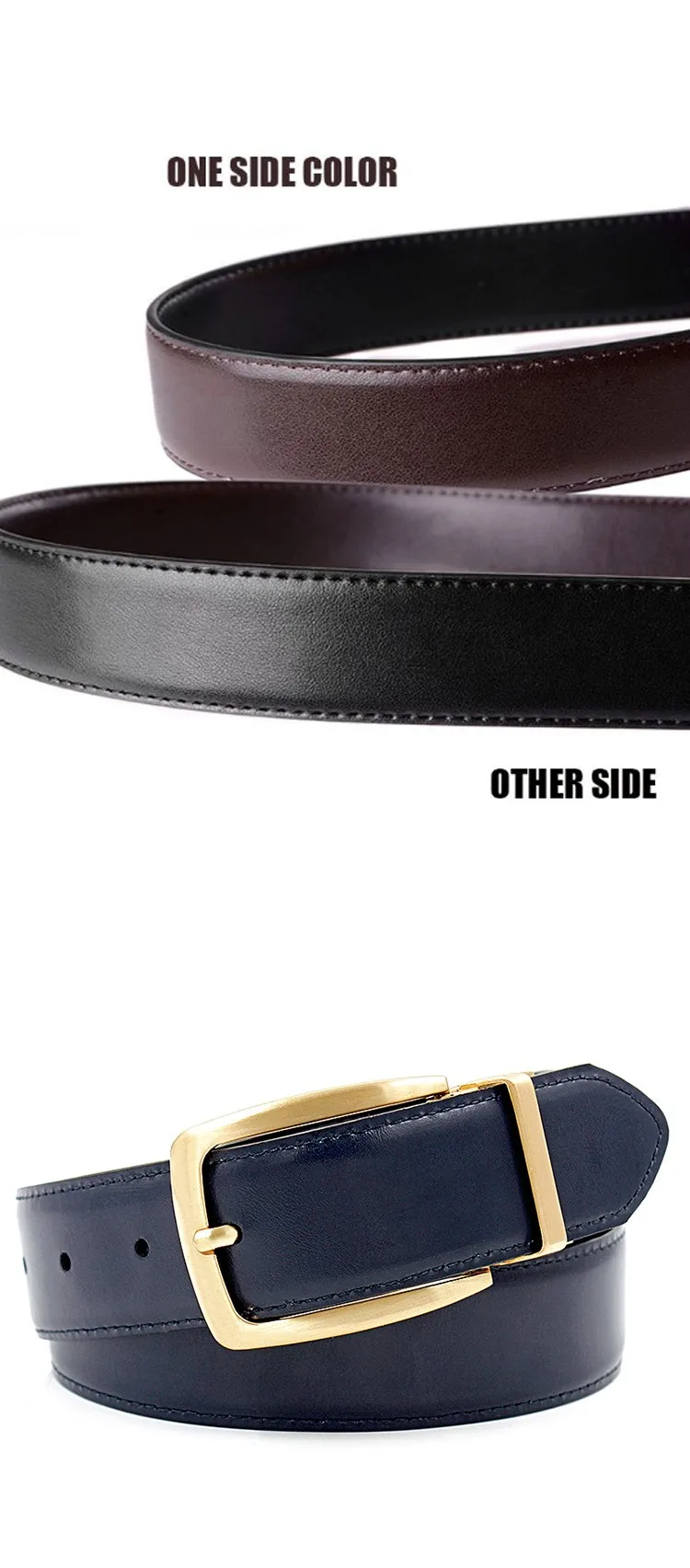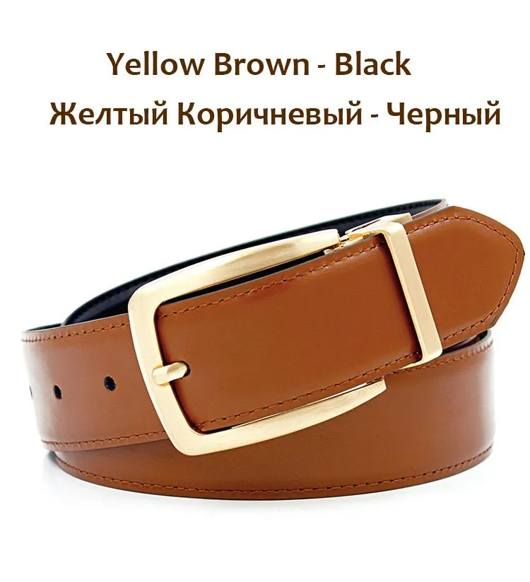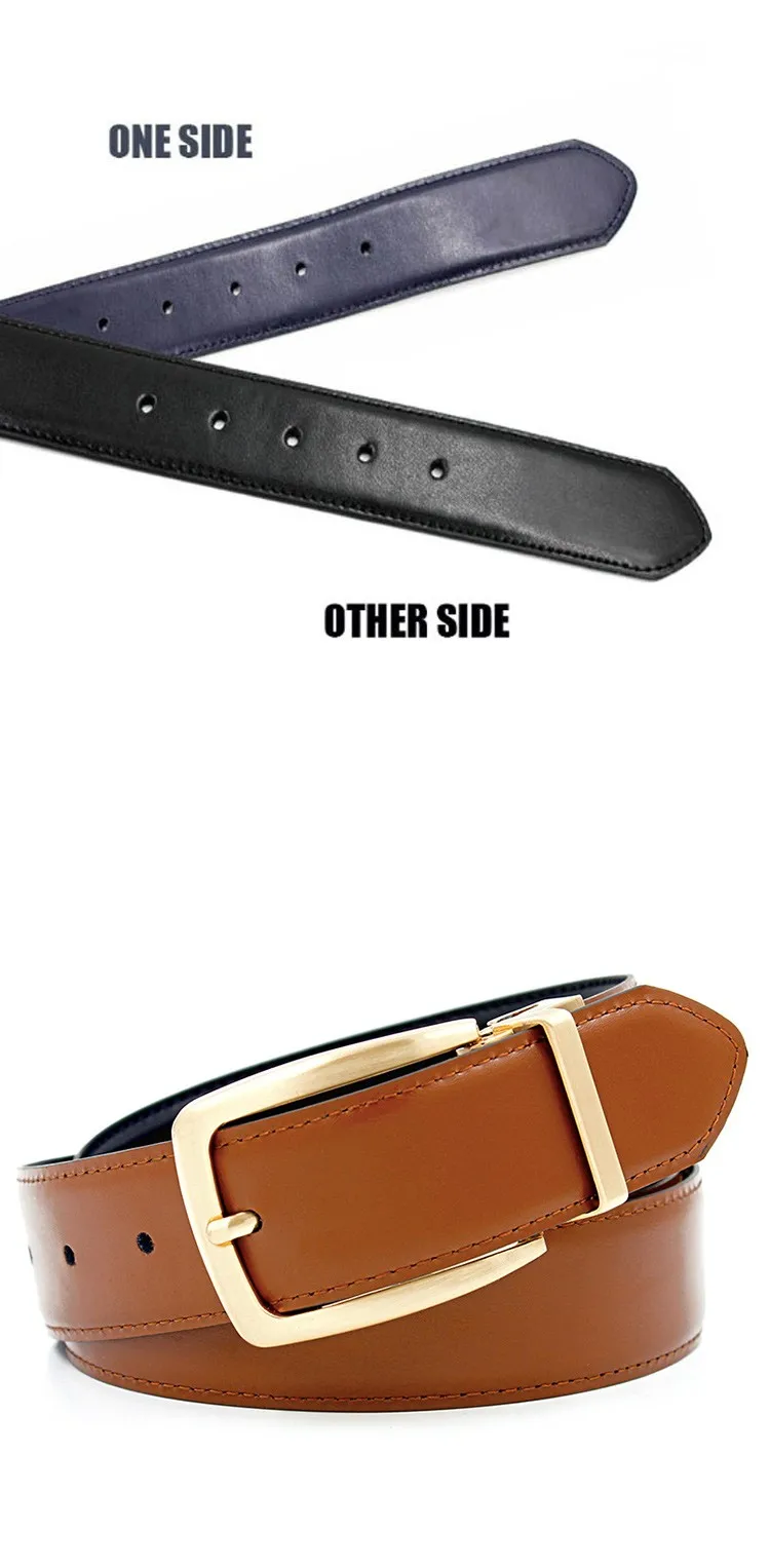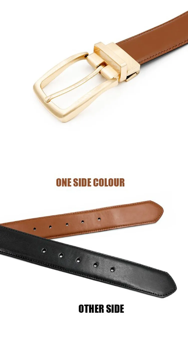 Hot Luxury Gold ReversibleMens Waist Belts 2016 Real Leather Solid Brass Men’s Belt Pure Brass Belt Reversible Buckle  :