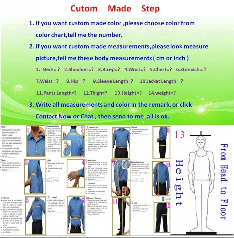 One Suit = (Jacket+Pants+Bow Tie+Vest),if you need  the shirt, please plus20usd/piece.you can click the picture to order the shirt