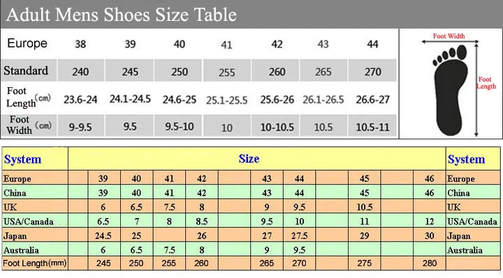 ( Note: Foot length is the length of your foot, it is not the insole of the shoes ! )
