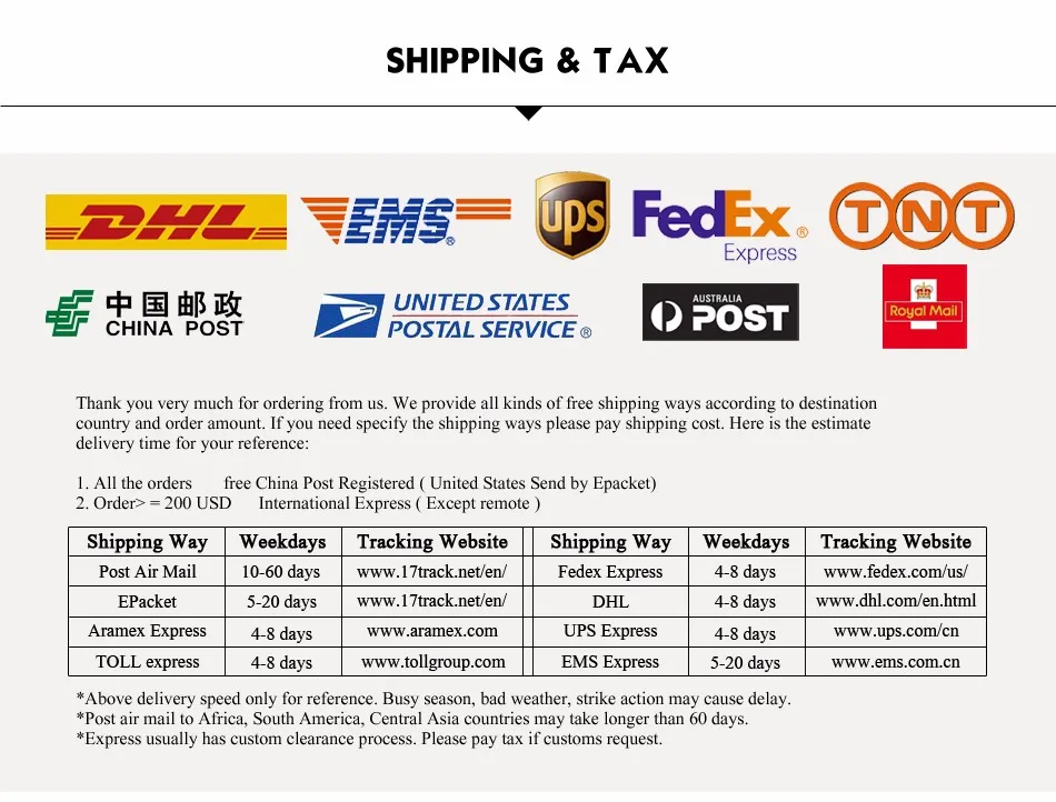 - Express Free Shipping: Order More than 180$ DHL/FEDEX/UPS/EMS