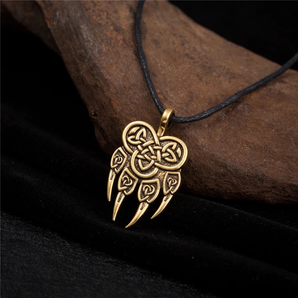 Skyrim Bear Paw Pendant Necklace Slavic God Symbol Talisman Amulet Lucky Celtics Knot Rope Necklace Jewelry for Man Woman